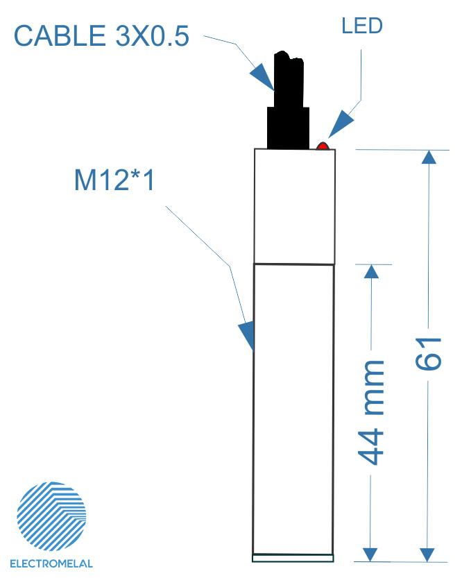مشخصات ظاهری سنسور مغناطیسی سیلندری MSR12-5-CAD