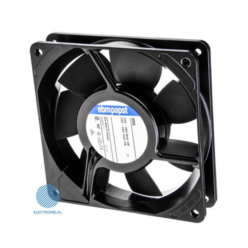 فن بلبرینگی آکسیال 9956 دارای وزن بسیار کم 0.325kg، ابعاد 119× 119 میلیمتر و ضخامت 25 میلیمترمی باشد. این فن دارای تیغه های 7 پره فلزی بلبرینگی است. فن بلبرینگی 9956 از توان 14 وات، ولتاژ 230AC و سرعت 2450 دور در دقیقه برخوردار است. فن آکسیال 9956 دارای قدرت جریان هوای 117m³/h، صدای کم و عمر طولانی است.
